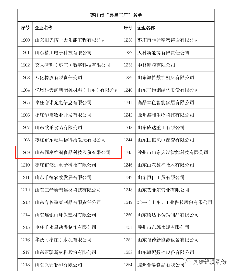 近日,山東省工業(yè)和信息化廳印發(fā)《關(guān)于開展數(shù)字經(jīng)濟“晨星工廠”入庫培育工作的通知》,山東同泰維潤食品科技股份有限公司成功入選。